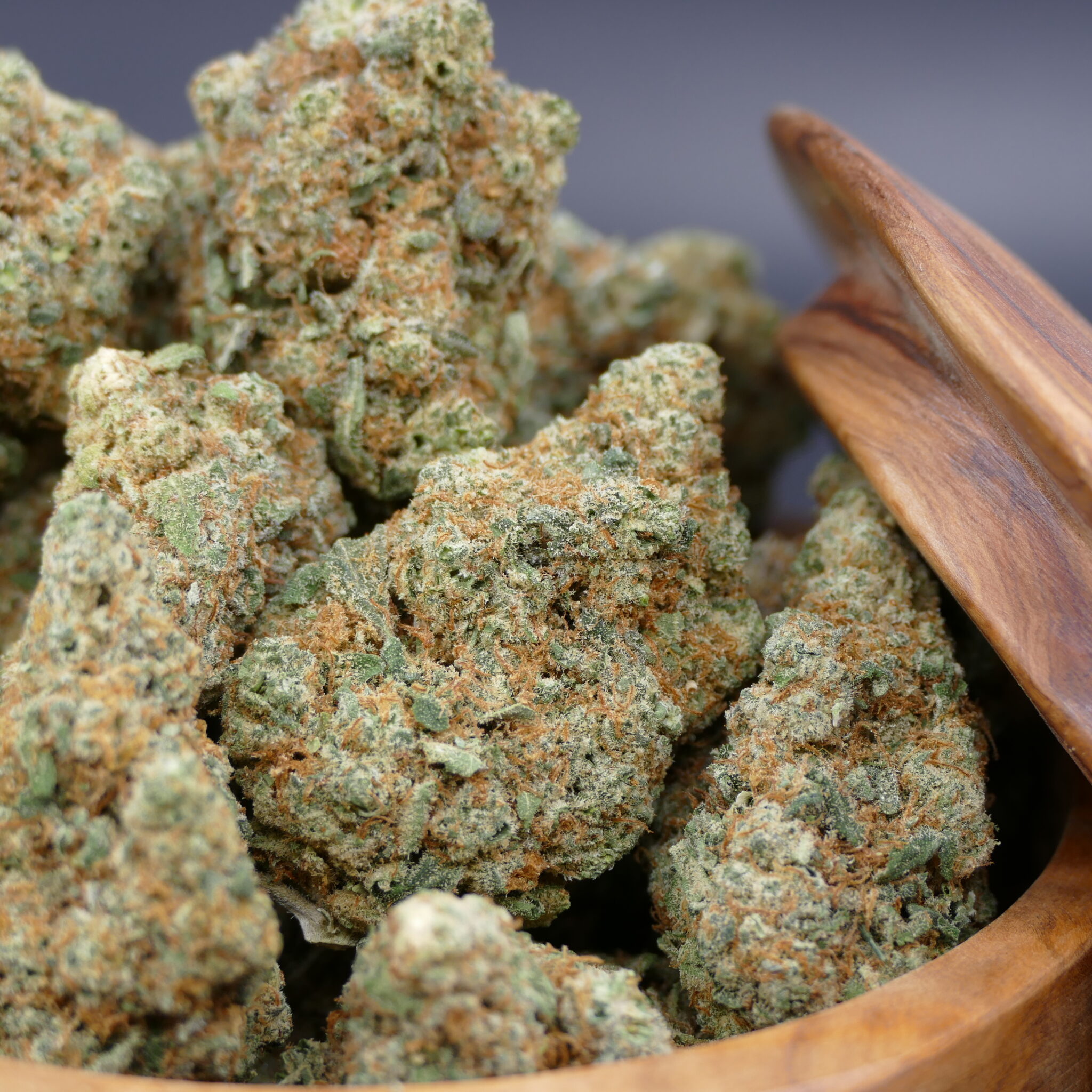 Visualmente, presenta tonos verdes vivos acompañados de pistilos anaranjados y una cobertura resinosa notable, reflejo de su riqueza en tricomas, donde se concentran cannabinoides y terpenos.